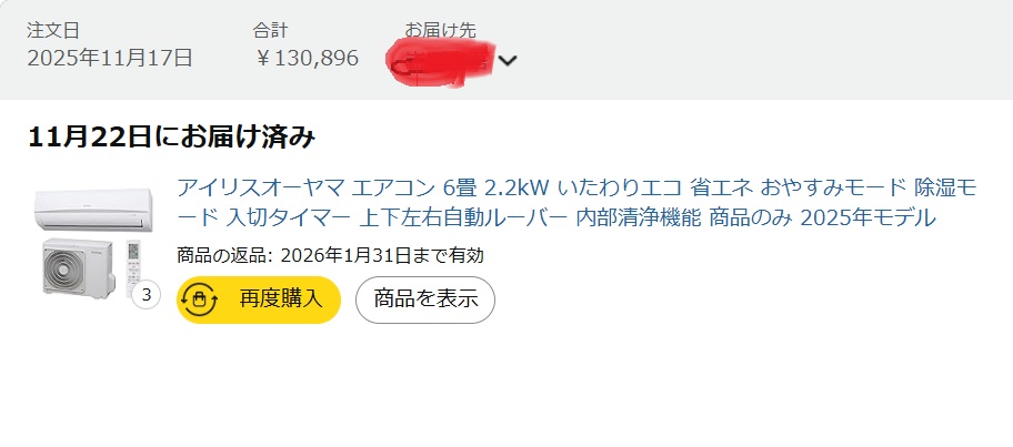 アマゾンの配達員とすれ違っており、まだ受け取れていません。