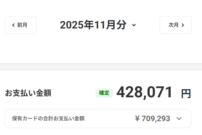 あとはご飯やら移動やらで毎月のカード代が70万円くらい。